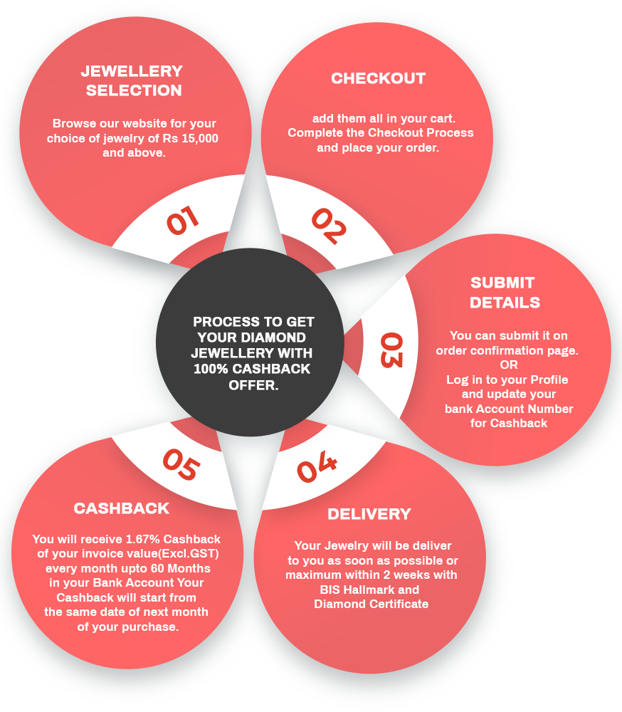 Follow the below Process to get your Diamond Jewellery with 100% Cashback offer.